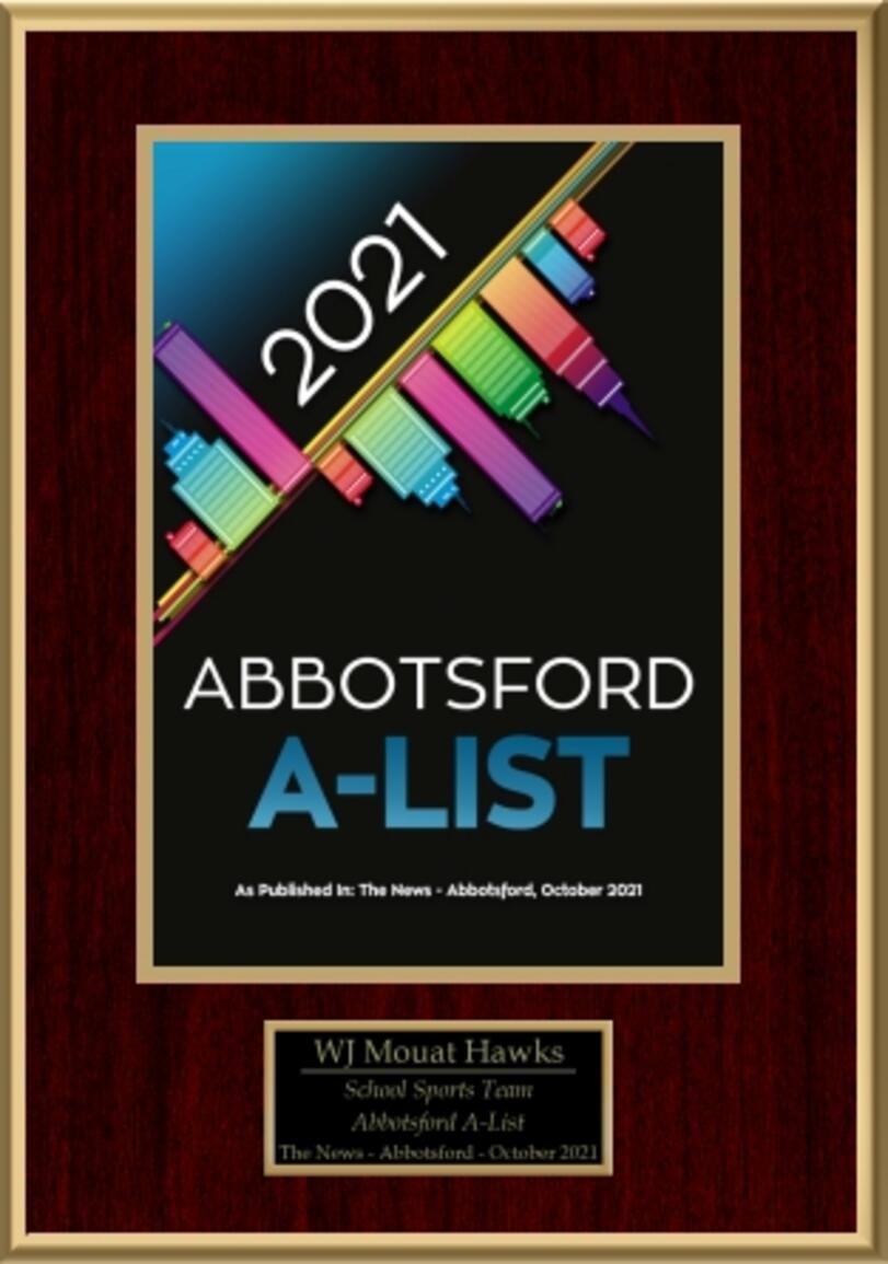 In October 2021, the Abbotsford News published their A-List Recognition of outstanding business, and organizations throughout Abbotsford. We, WJ Mouat Haws, are proud to be the recipients of the 2021 Outstanding School Sports Team. This award is a huge credit to our coaches who volunteer an extraordinary amount of time to creating high-caliber teams, to our students who put in an equal or greater amount of time perfecting their skills and game IQ, and to our school community to support our athlete-scholars to be the very best. THANK YOU to each of you for contributing to our success.
