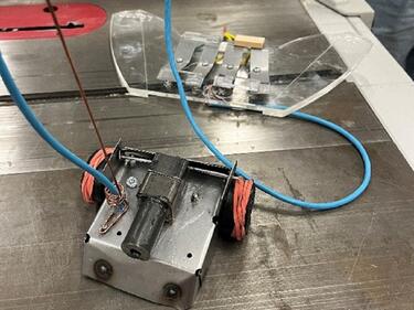 The objective of the Sumo robot challenge is simple; get your opponent out of the ring using traditional Sumo rules. To compete in the challenge, students created a self-built mini sumo that is no more than 10cm x 10cm with a max weight of 500g when placed on the playing surface at the beginning of the match. The robot will be manually controlled by the student through an attached tethered wire. Students had to build their robots to a set of criteria but were allowed full autonomy on what their robot would look like. Whether this was adding defensive capabilities to make there robots harder to lift off the mat or maybe they used a different gear ratio on their gearbox to make the robot quicker in the sumo ring.