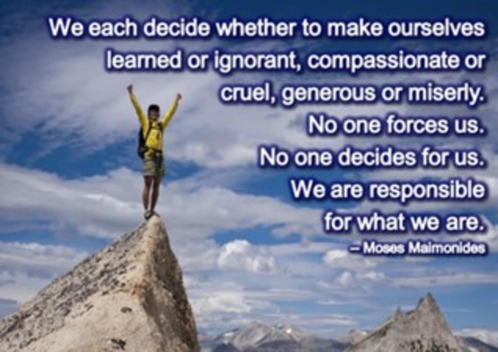 Students demonstrate the trait of responsibility by taking ownership of their lives and acknowledging their power to choose what they think (including their attitudes and mindsets), say and do, and their accountability for the consequences of their choices.