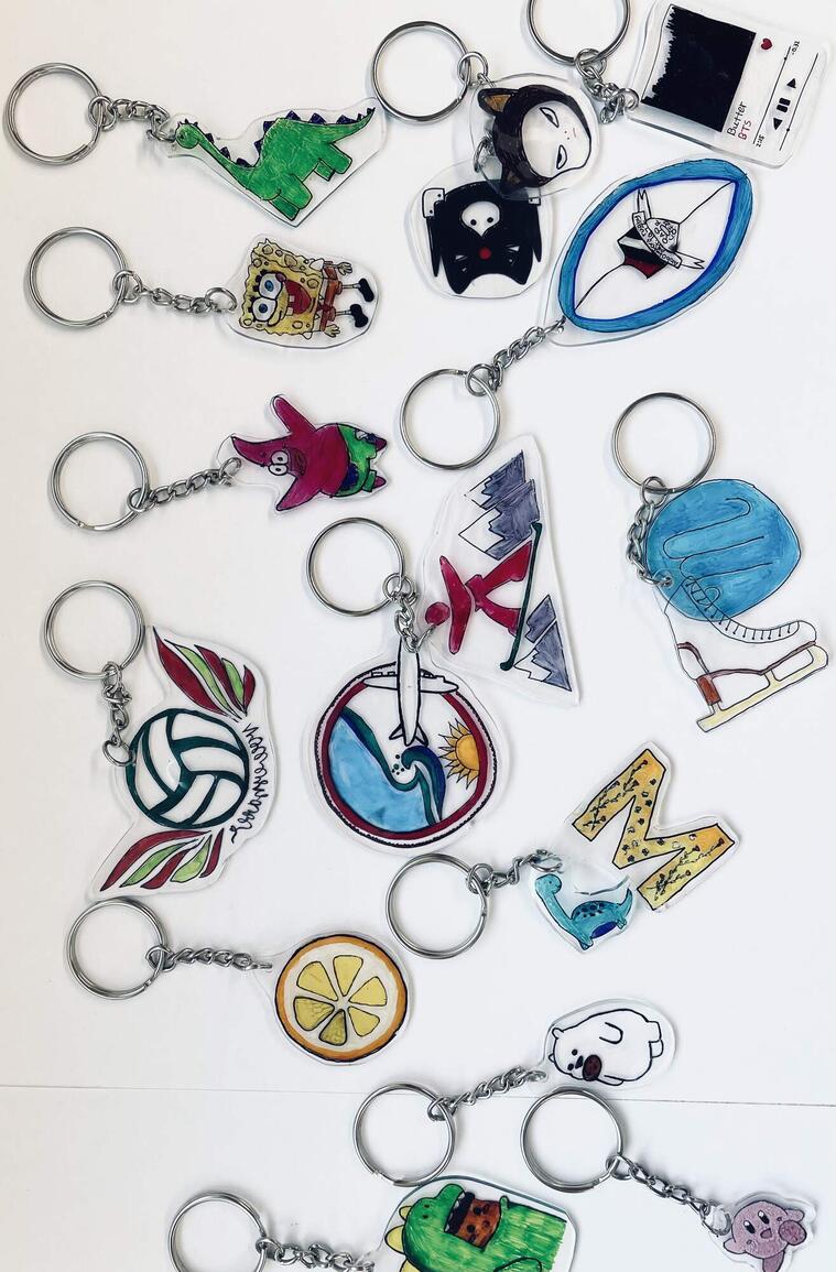 Students in the new Graphic Arts class kicked off the semester with a fun project inspired by famous illustrator Julia Rothman. Students created their own keychains by using imagination and inquiry to design symbols and metaphors to create meaning about themselves through consumable art. There is more amazing graphic artwork to come so stay tuned and join the class if you're interested! Check out our headline image or the image below for samples.