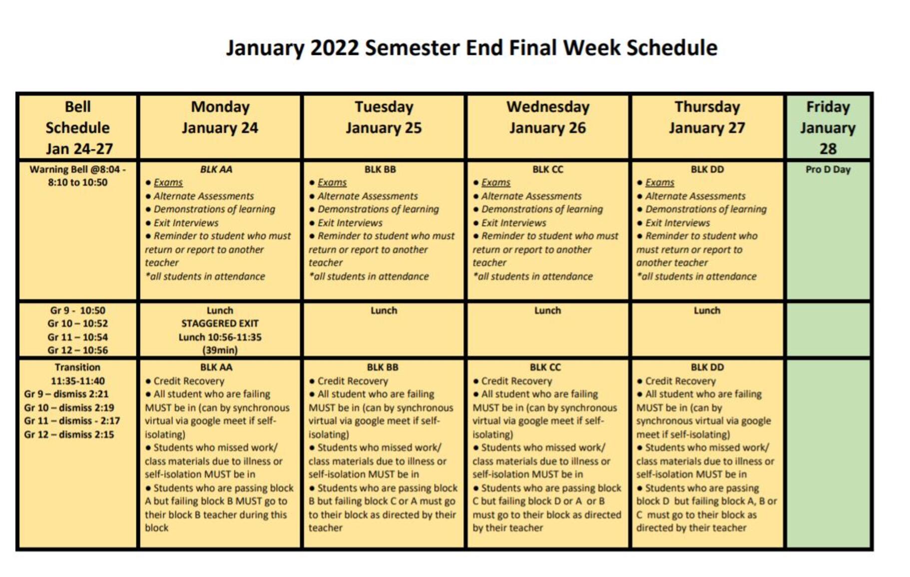 - Last Day of Semester 1