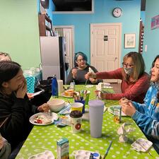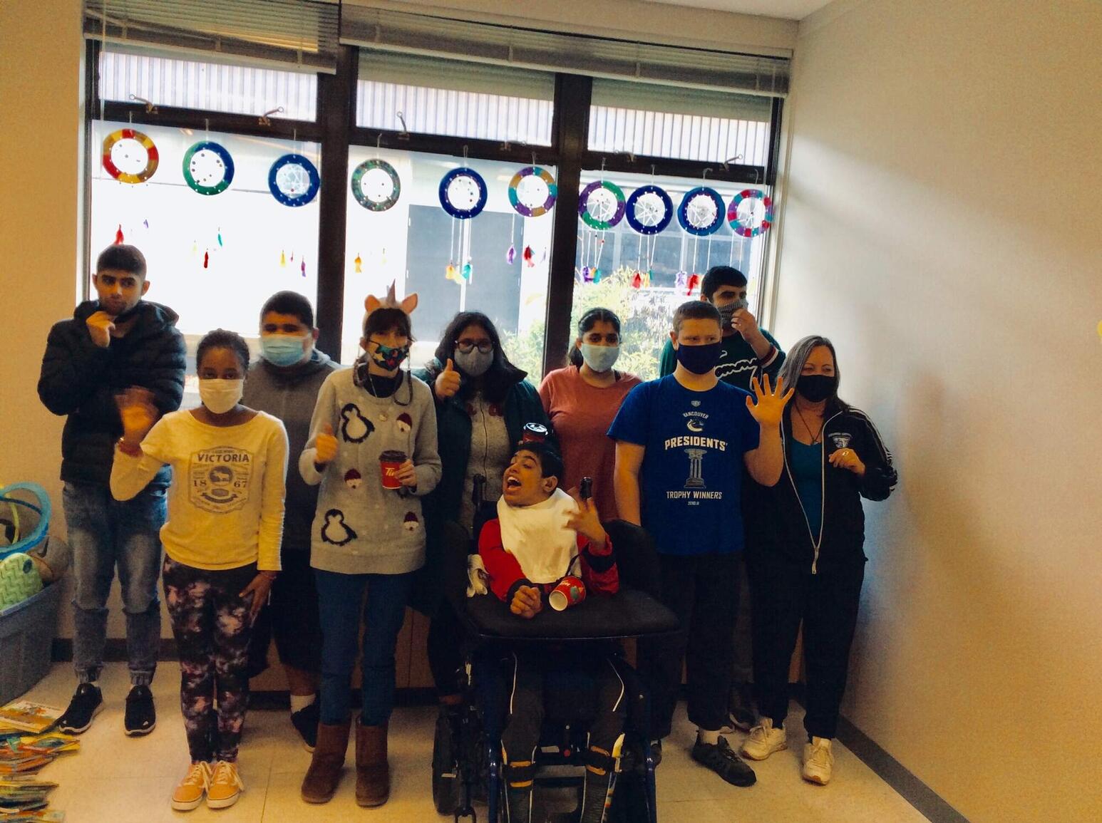 [A group of people posing for a photo Description automatically generated] A big shout out to our Inclusion class and EAs including the Teacher for Inclusion, Cassy Crawford. They jumped into the colouring contest challenge for Roc Your Mocs day and won a hot chocolate & donuts party for their class. Thank you to the 8 classes who participated in the Roc your Mocs Kahoot. This event was created to help instill Indigenous pride. In the background of one photo, you can see the beautiful dream catcher craft that the students made. The students listened to the story from Sam, the ISW here at Mouat. She told them how the dream catcher was a gift from a spider. Typically, dream catchers are received as a gift and then hung over your bed. At night while you sleep, its job is to block all the bad dreams from coming your way the same way that flies are caught in a spider's web. Also, the center of the dream catcher has an open circle. It is through this circle that all the good dreams stream towards you. Drop us an email or pop by sometime to discuss different ways that Indigenous students, ways, knowledge, and content can be supported in your class.