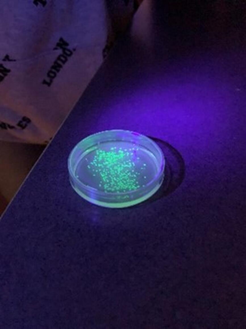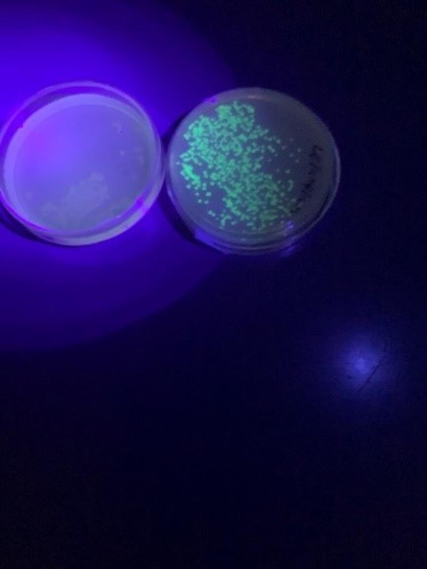 Specialized Science 12 (Laboratory Practice) is a course designed to allow students to gain skills in the processes of science. The course is designed so that students get hands-on experience primarily in the fields of Chemistry and Biology, but other science disciplines are explored. Recently, students worked for three days to use their knowledge and skills to genetically engineer bacteria to glow. Students studied gene expression and gene regulation and followed protocols to be able to alter the DNA of the bacteria. All students were able to modify their bacteria samples to be able to glow!