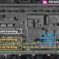 Students may park their vehicles in the Mouat parking lot before or after their red-carpet arrival.