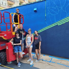 This summer Kaia Bath, 2022 Mouat graduate, was selected to join a team of artists lead by well-known print maker and muralist Kari Kristensen. The Reach Gallery organized the mural project as a mentorship program. Together this team painted the most recent mural in downtown Abbotsford. In Kaia’s words “So endlessly happy about this opportunity! I had the absolute best time and am so happy with the mural, can’t wait for you to see it!”
